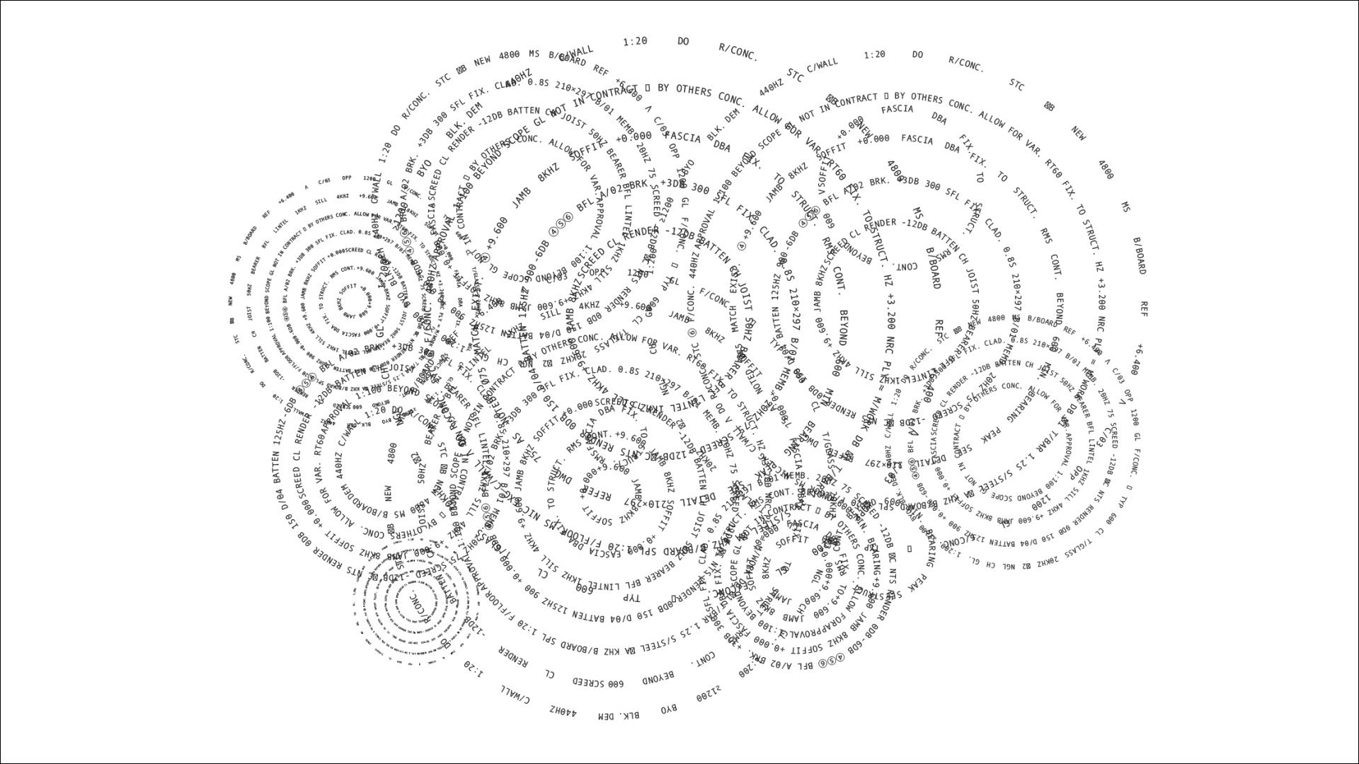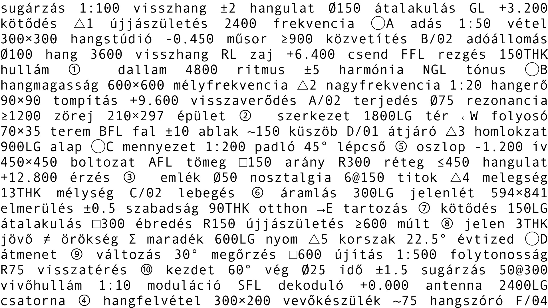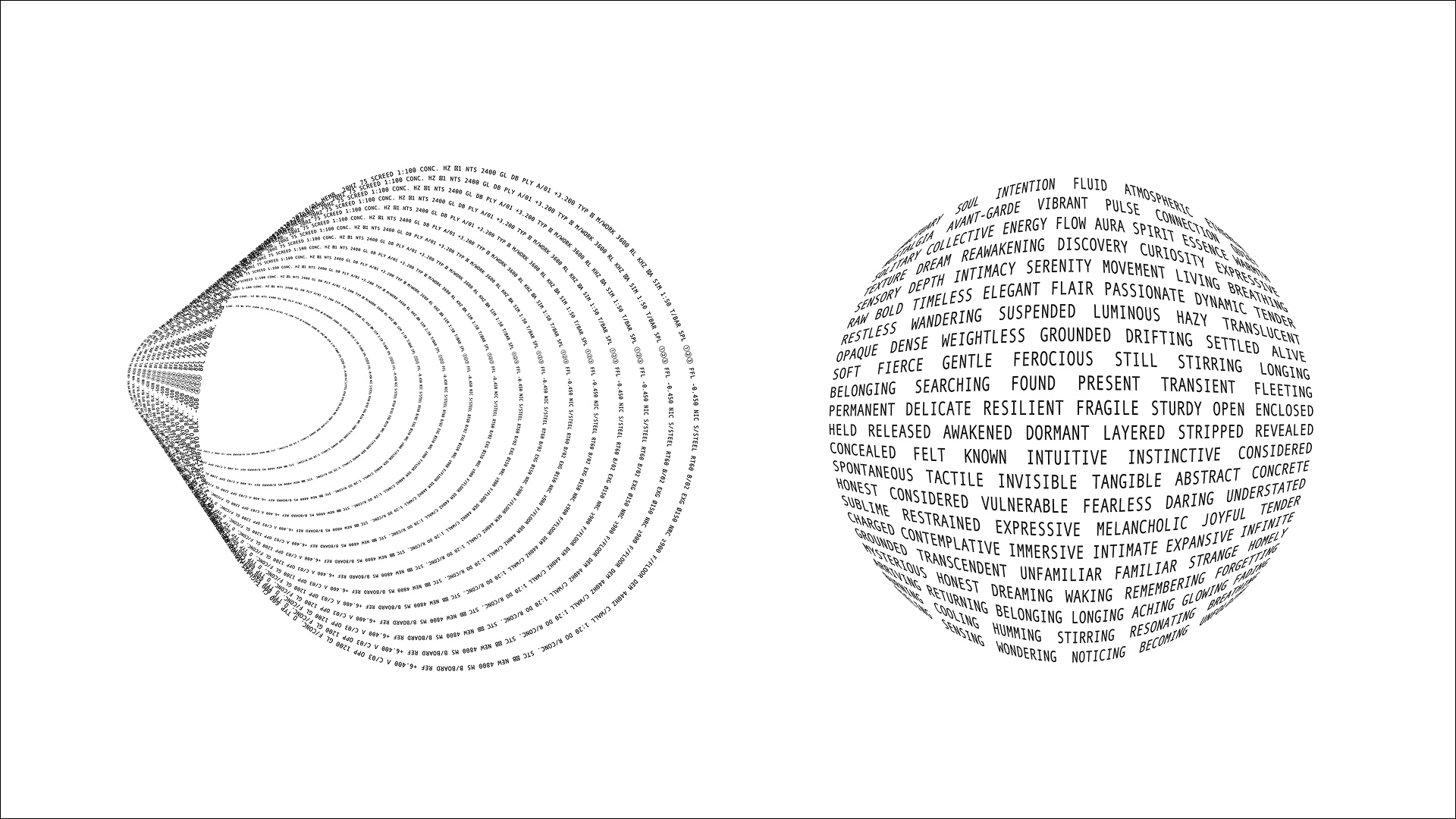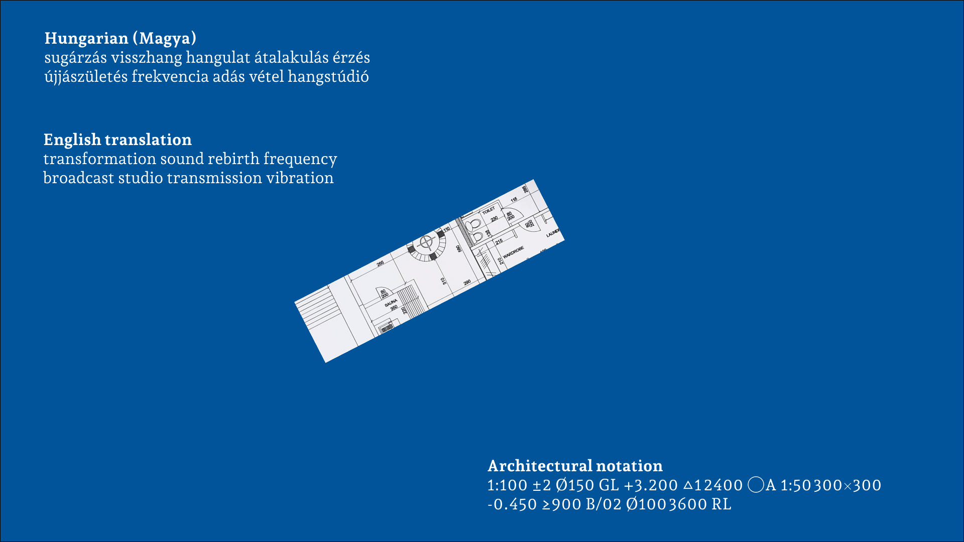 Rooted in the building's sonic history, the concept draws from cymatics - the phenomenon of sound made visible in matter. Hungarian broadcast vocabulary is rendered as generative typographic spirals, turning the building's frequencies into a living visual system.